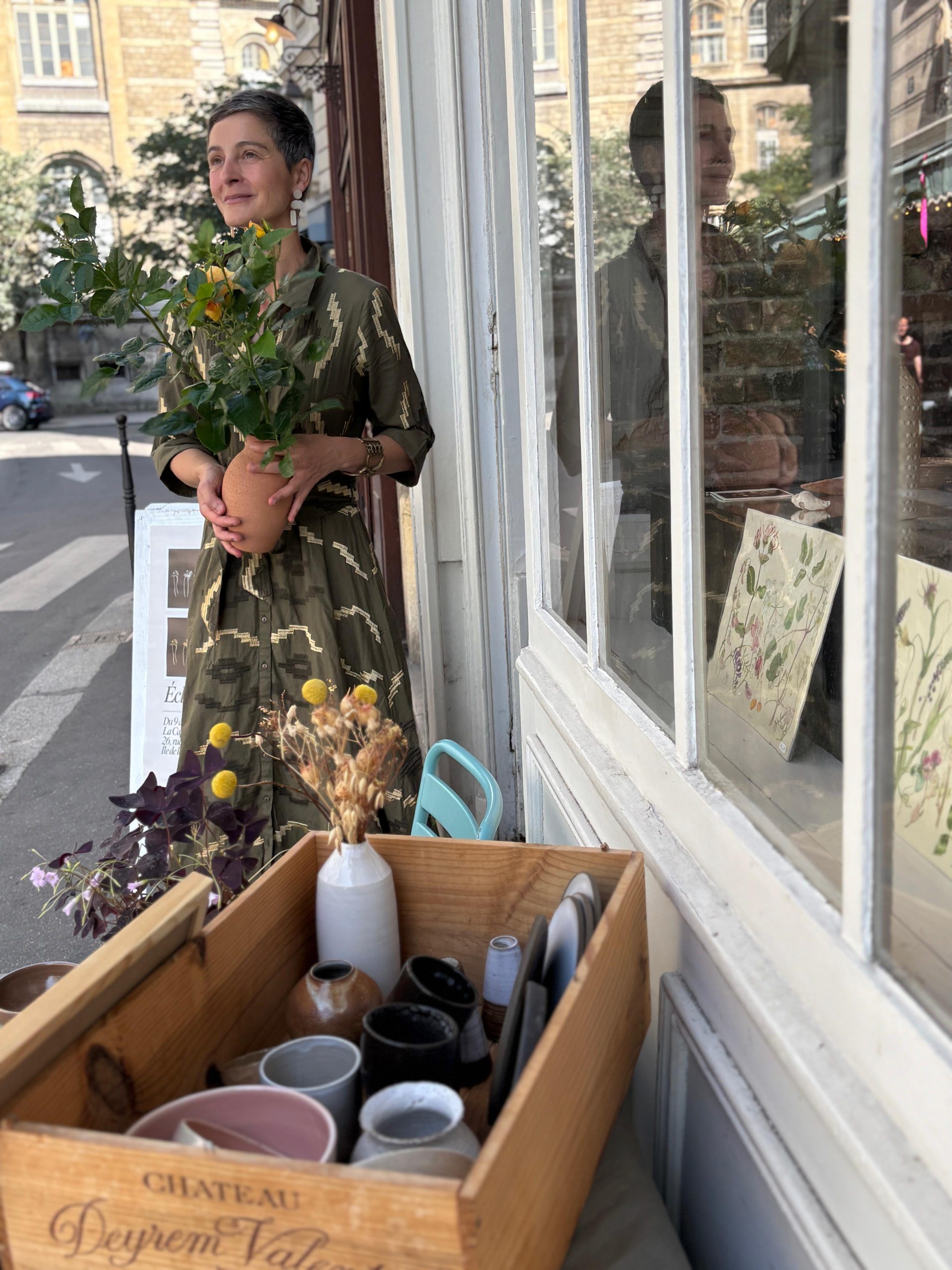 Mon atelier est installé au sein d’une charmante maisonnette, ouverte sur un jardin. C’est dans cette atmosphère propice au calme et à la création que j’imagine et façonne minutieusement mes collections, du modelage/ tournage jusqu’à la cuisson.